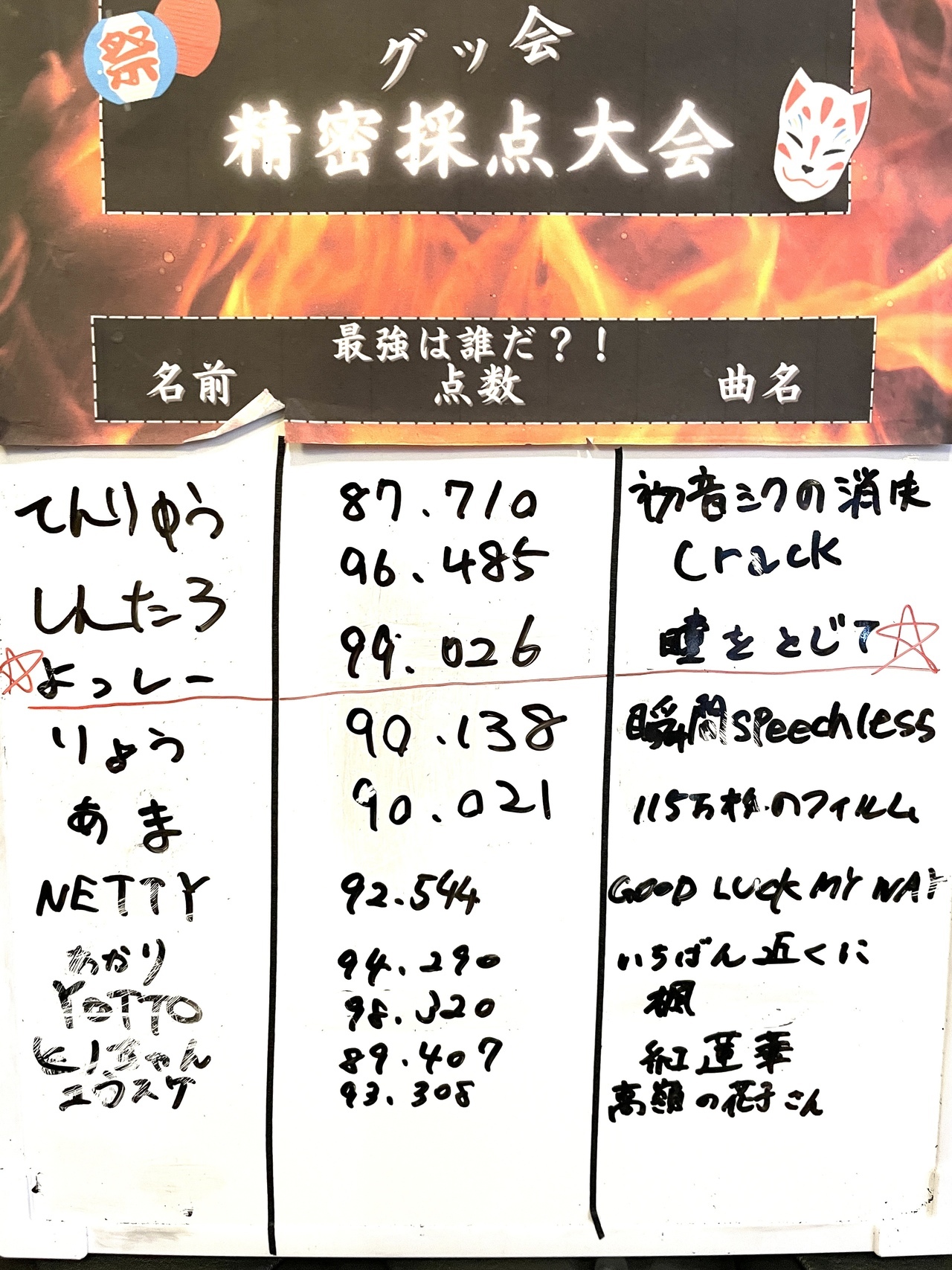 1位 よっしー 様 99.026点